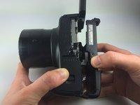 Remove the two Phillips #000 screws, length 5 mm, on either side of the viewfinder.