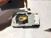 Use tweezers to pull out the circled brown flat flexible wire from its connection.