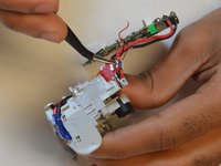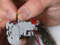 Use the soldering iron to remove the red and black wires from the battery contacts.