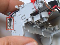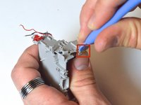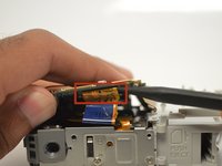 Use the spudger to unclip both wires from underneath the shutter button and settings dial housing unit.