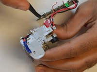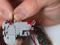 Use the tweezers to remove the red tape and rubber strap to begin removing the wires from the plastic hooks.