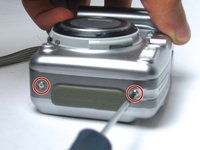 Remove the six 4 mm screws on the sides and bottom of the camera using a Phillips #00 screwdriver.