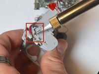 Use the soldering iron to remove the red and black wires from the battery contacts.