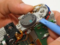 Use the plastic opening tool to separate the user button circuit board from the shutter button and settings dial housing unit.