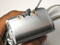 On the bottom of the camera remove the two visible 4mm Phillips head screws.