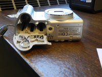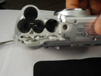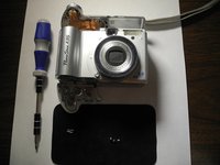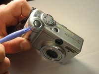 Using the pry tool, gently remove the front cover of the camera in order to expose the flash and the lens.