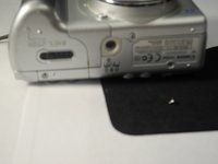 With the screen facing toward you, the battery slot can be found under the right side of the camera.