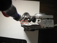 Once the top is loose, locate the 2 screws near the AV outlet.