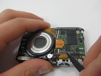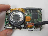 With the battery door still open, use a spudger to remove the cover from the front of the camera.
