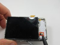 Holding the display screen, gently pull the ribbon cable out through the frame of the camera.