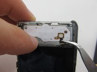 Using tweezers, carefully remove the ribbon cable from the connector shown.