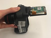 Remove the back cover of the LCD screen (has “Canon” written on it).