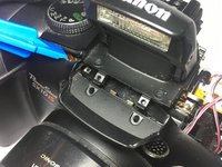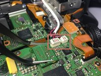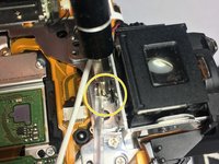 Remove one screw that is holding down the middle of the clear piece to the body of the camera. The whole structure with wires will swing out.
