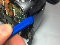 Move to the right side of the camera and gently pry at the top and bottom areas of this part of the casing. The front casing will come free once it has been pried here.