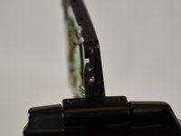 Unscrew the two 3 mm screws shown on the left side of the LCD screen panel using a Phillips screwdriver.