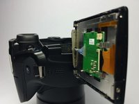 Using a plastic opening tool, remove the unfastened LCD screen cover from the camera.