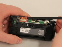 Carefully place the camcorder where the inside of the device is facing upwards and remove the 3mm Philips #000 screw shown.