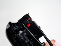 Using a pair of tweezers, gently push in the red tabs of the power button.