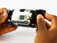 Locate and remove the screw on the side of the camera where you previously removed the side panel.