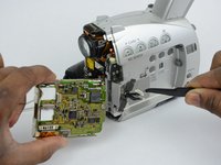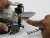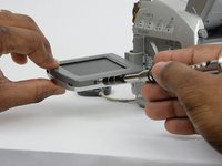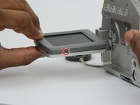 There is a 2.7 mm screw located where the LCD monitor is connected to the main body of the camcorder. Remove the 2.7 mm screw.