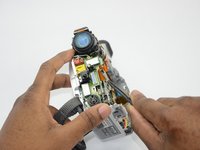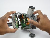 • Gently pull the two black wires from their connections. These black wires are the only thing left connecting the side panel to the main body of the camcorder.