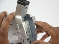 • Now that all of the screws are removed, gently pull off the side panel of the camcorder.