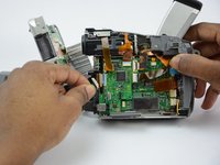 • Pull out the white wire from its connection so that the green circuit board can be completely removed form the main body of the camcorder.