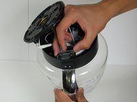 With one hand, firmly grip the lid while designating your other hand to wedge the spudger between the lid and the glass pot.