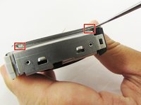 Remove the two 2 mm silver screws from the top corners of the camera using a Phillips #000 screwdriver.