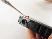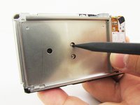 With the metal spudger, pry out the edge of the silver strip at the bottom right side of the camera.