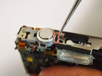 With the metal spudger, pry out the edge of the silver strip at the bottom right side of the camera.
