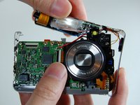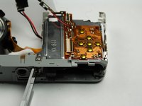 Use your Phillips #00 screwdriver to remove the two screws connecting the frame to the back of the camera.