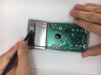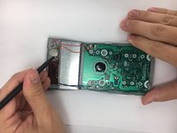 • Use plastic spudger to separate backplate from the front-plate. Place the flat end of the spudger in the seam between the front and back, near one end of the calculator. Then slide the spudger towards the calculator's center. The two sides will pop free from each other as you go through it with the spudger.