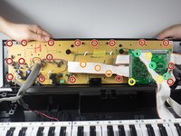 Once all the screws have been removed, lift the component board and place it face down on the keys.