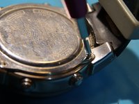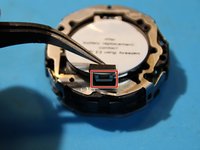 In this case the watch didn't have a battery installed, but to get the battery out you have to use the tweezers and unhook the latch holding the battery in place.