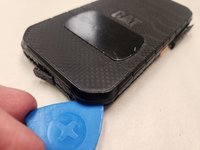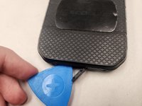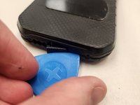 Starting on the bottom left corner, work your way around the corner. You should hear a few snaps as the locking clips are disengaged by your opening pick.