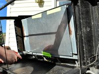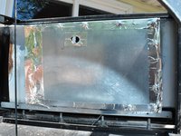 Measure and cut a piece of low gauge sheet metal to cover the dimensions of the drip pan opening.