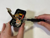 Remove the three 10 mm gold screws holding the wires in place using a Phillips #1 screwdriver.