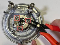 Use the pliers to pinch the three metal flaps flat and remove the spring.