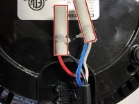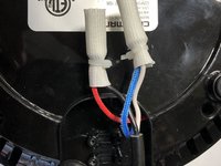 Once the white tabs come off, the power cord will be more visible, the white wire is connected with the blue wire, while the black wire is connected with the red wire.