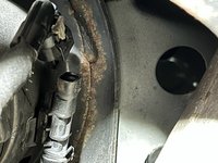 You may have noticed that the electrical connector is larger than the hole at the top of the strut, it can't be slid through!
