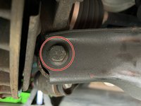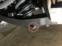 An 18mm nut and bolt secures the lower control arm to the rear knuckle and must be removed.