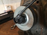To reassemble, insert the new shock absorber into the coil spring and re-install the stackup of parts. Tighten the top strut nut, and install a new zip tie to keep the cable correctly oriented. Route the electrical harness through the mounting plate then install the pins into the electrical connector, matching the colors to how they were originally installed. They should click into place and not be removable by hand.