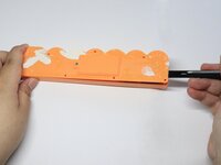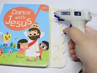Using a hot glue gun to reattach the sound case to the book and press it for a few seconds.