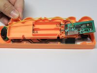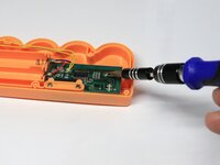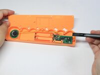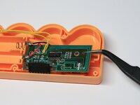 Use tweezers to remove the orange magnetic cover and gently lift out the mainboard. Take care not to strain the connected wires.