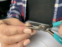 Going from the sides, use the long-nose pliers to slowly and gently pinch close the loop ring as seen in the picture. Loop ring may break If done with too much pressure.
