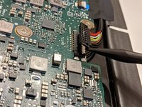 Using a spudger or prying tool (but no metal), gently pry one side of the connector up from the board.