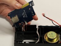 Detach the plastic speaker cover on both the front and back sides. Then slide the cover off of the device.
