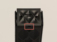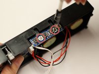 Remove the five 1 cm screws on the back side (opposite of the speakers) of the device using a Phillips #1 screwdriver.