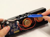 Detach the plastic speaker cover on both the front and back sides. Then slide the cover off of the device.